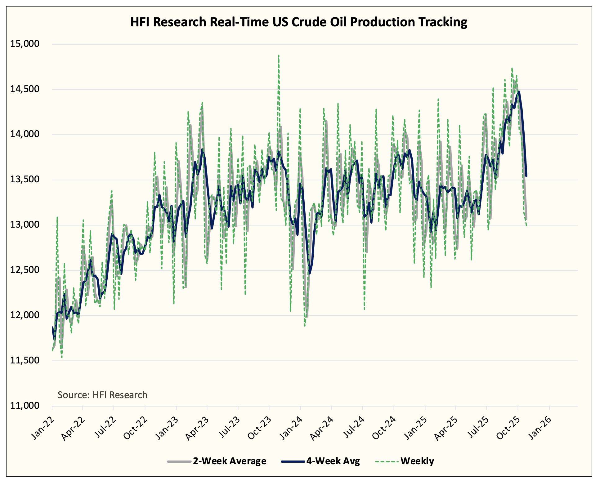 - The International Energy Agency (IEA) now warns of a potential record surplus in 2026. OPEC+ members agreed last week that after the December increase, they will pause further hikes in Q1 2026 in response to weakening market conditions. Saudi Arabia alone boosted output by 40,000 barrels per day in October, reaching an average of 10.02 million barrels per day.