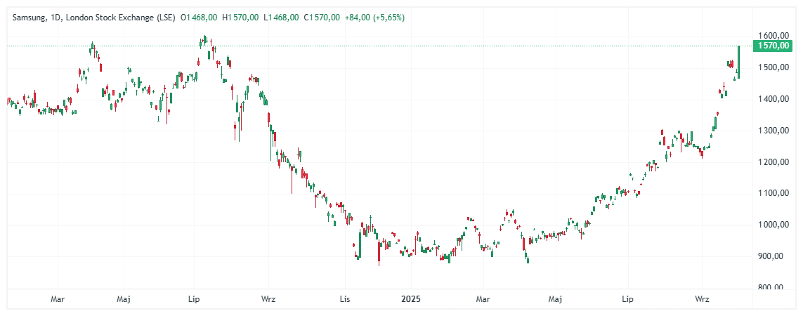 Samsung Electronics (SMSN.UK) rose more than 4%, marking its highest point since January 2021. Also other Korean giant SK Hynix surged today on OpenAI deal news.