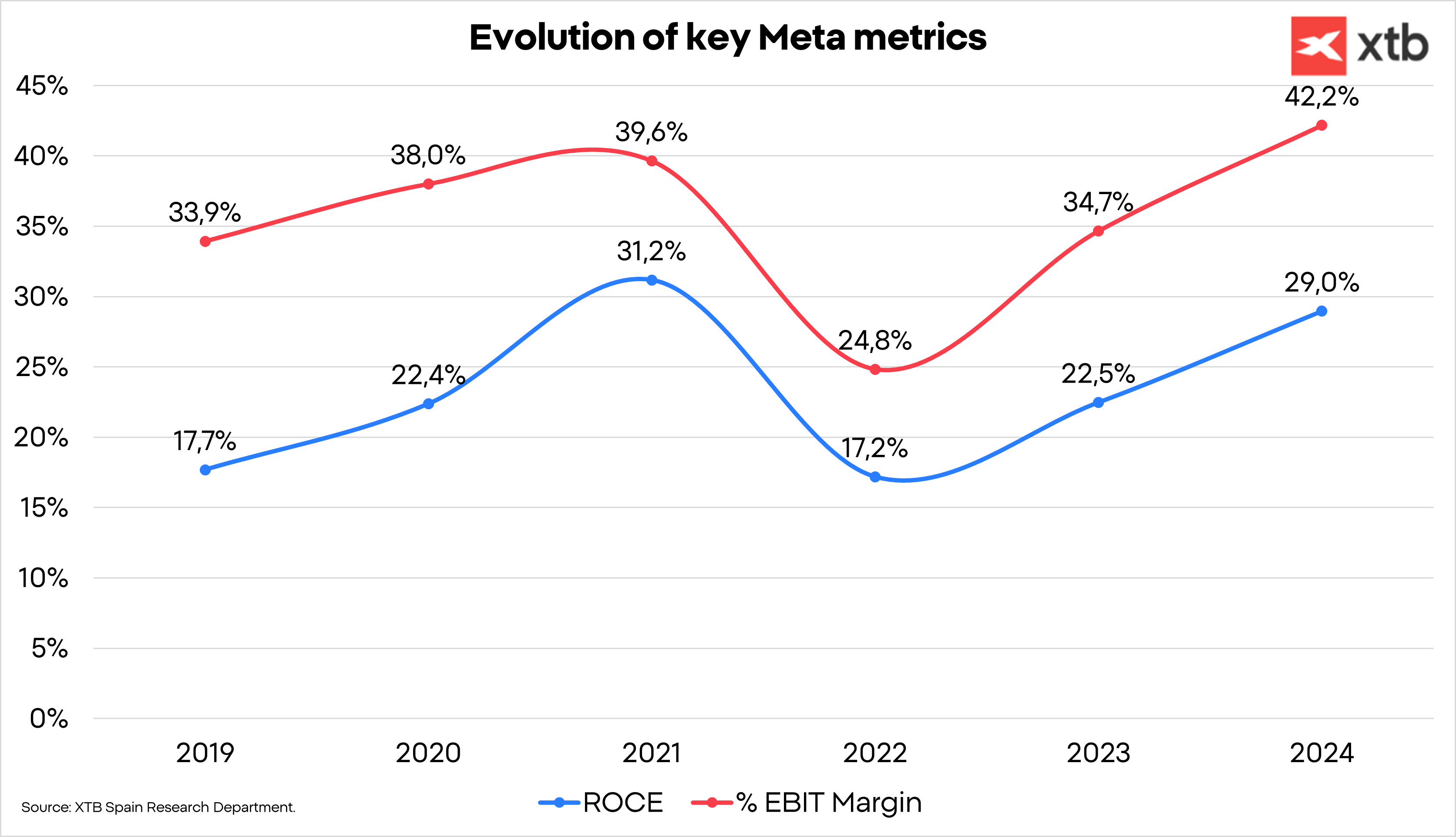 Meta has two key competitive advantages that allow it to achieve high margins and the ability to invest in alternatives that are currently unprofitable thanks to the cash generation of its core business. These competitive advantages are: