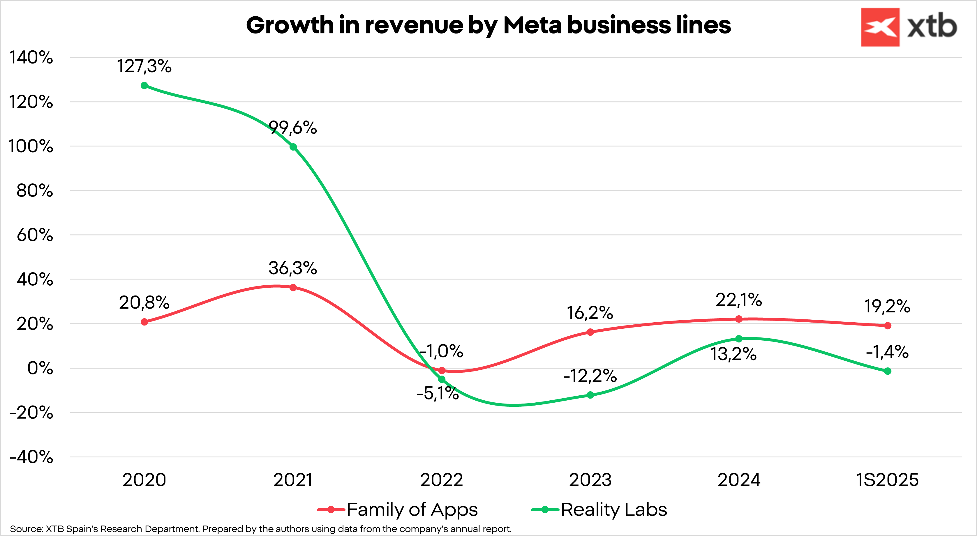 - Reality Labs: This is Meta's secondary segment, which includes investments in experimental technologies, the metaverse, and virtual reality headsets, such as Meta Quest. In this area, Meta also sells hardware, i.e., the headset itself. This segment is reporting significant losses for Meta, but we believe it has interesting potential in the future. So much so, that it is the most advanced company in this field and has just launched new everyday Ray-Ban glasses with integrated AI.