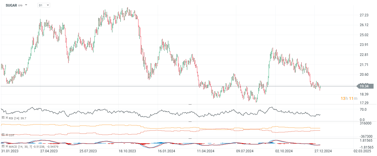 - Reading the sugar CoT report from 31 December, we can see a significant reduction in short positions of Commercial traders (producers/merchants) suggesting that commercial participants are less bearish on sugar prices, possibly anticipating price stabilization or even higher prices.