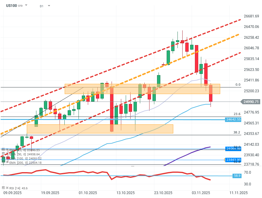The elephant in the room that markets have started to notice recently is the US government shutdown. The shutdown has become the longest in history. Previous episodes of this type ended with limited impact on the economy, but the situation is becoming increasingly serious, as confirmed by comments from Kevin Hassett, one of the main economic advisors to the White House. Hassett states that the effects of the shutdown are "much worse than expected." Comments from Scott Bessent, who claims that a large part of the US economy is already in a real recession, do not improve the situation. These concerns are shared by the Speaker of the House of Representatives — Johnson. A lack of quick addressing of the US budget problem could push indices significantly lower if further risks materialize.