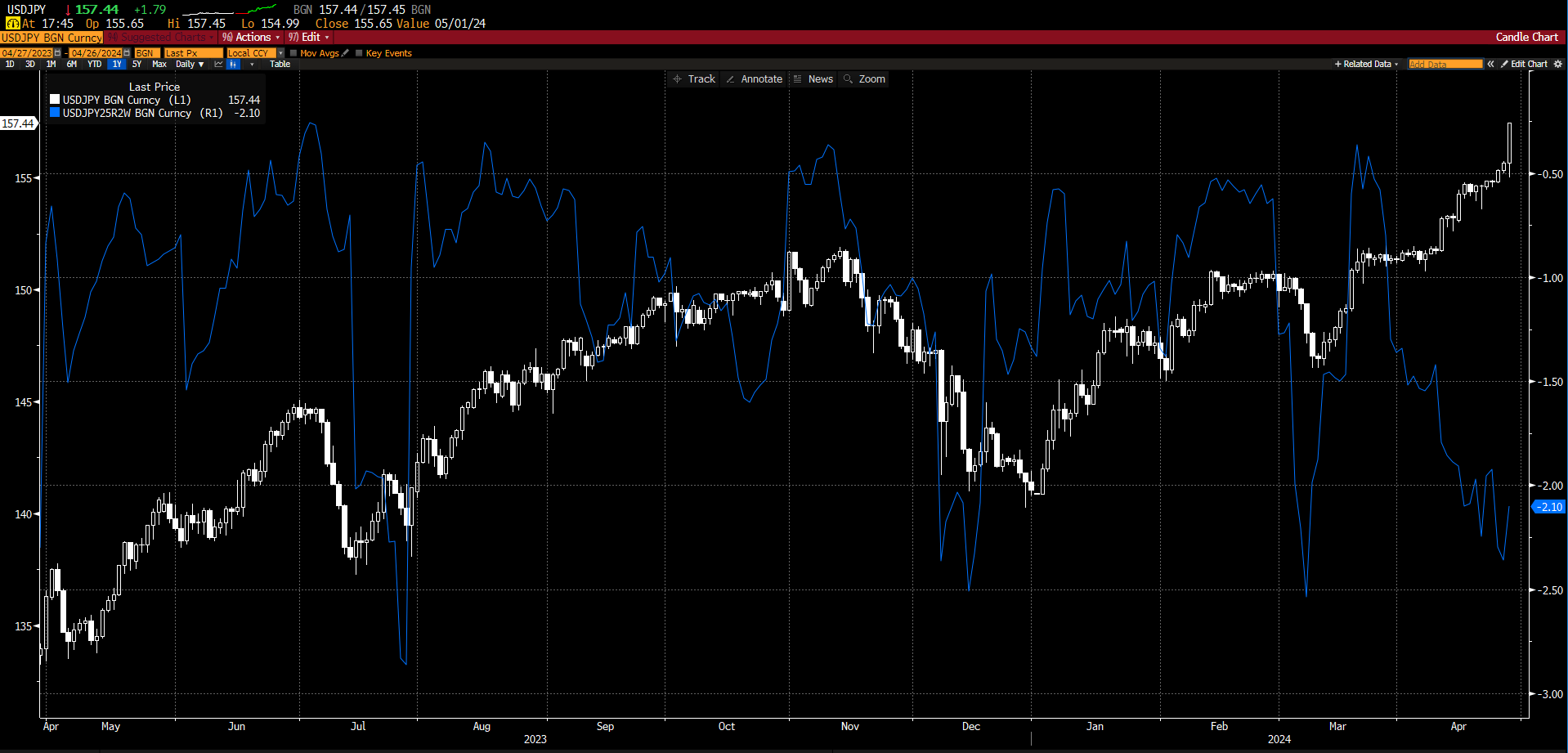 Data from the options market invariably indicates that investors are hedging against a sharp pullback in the yen market. So far, however, this scenario is not materializing. Above, Risk Reversal strategy indications for 2 weeks.