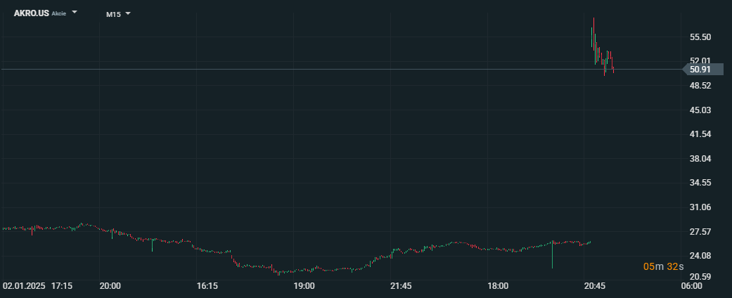 Akcie Akero Therapeutics prudce rostou o více než 100 % po průlomových výsledcích studie léčby jaterních onemocnění. Zdroj: xStation5