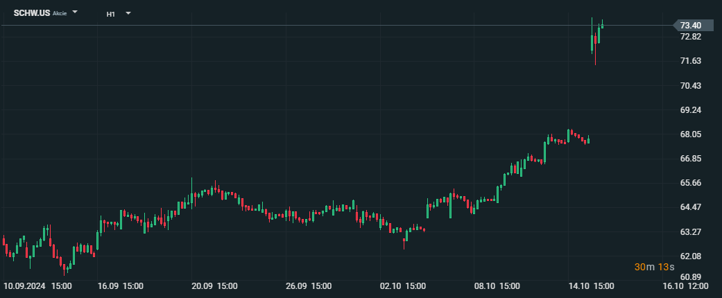 Akcie společnosti Charles Schwab (SCHW.US), známé finanční instituce ve Spojených státech, vzrostly o 8,3 % poté, co firma oznámila příjmy a zisky za třetí čtvrtletí, které překonaly očekávání analytiků.
