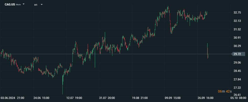 Akcie společnosti Conagra Brands (CAG.US) se ve středu ráno propadly o přibližně 10 % po zveřejnění slabých výsledků za první čtvrtletí, kdy firma nedosáhla očekávaných tržeb. Podle CEO Seana Connollyho čelí společnost „náročnému prostředí“, které ovlivňuje spotřebitelskou poptávku.