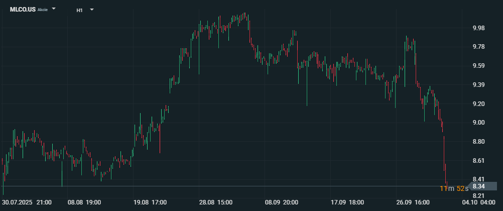 Akcie společnosti Melco Resorts & Entertainment Ltd. (MLCO) dnes klesly o více než 6,5 % poté, co data z čínského „Golden Weeku“ naznačila nižší turistickou aktivitu, než se očekávalo. Tato sváteční sezóna je tradičně považována za klíčové období pro příjmy kasin v Macau – hlavním trhu, kde Melco operuje.