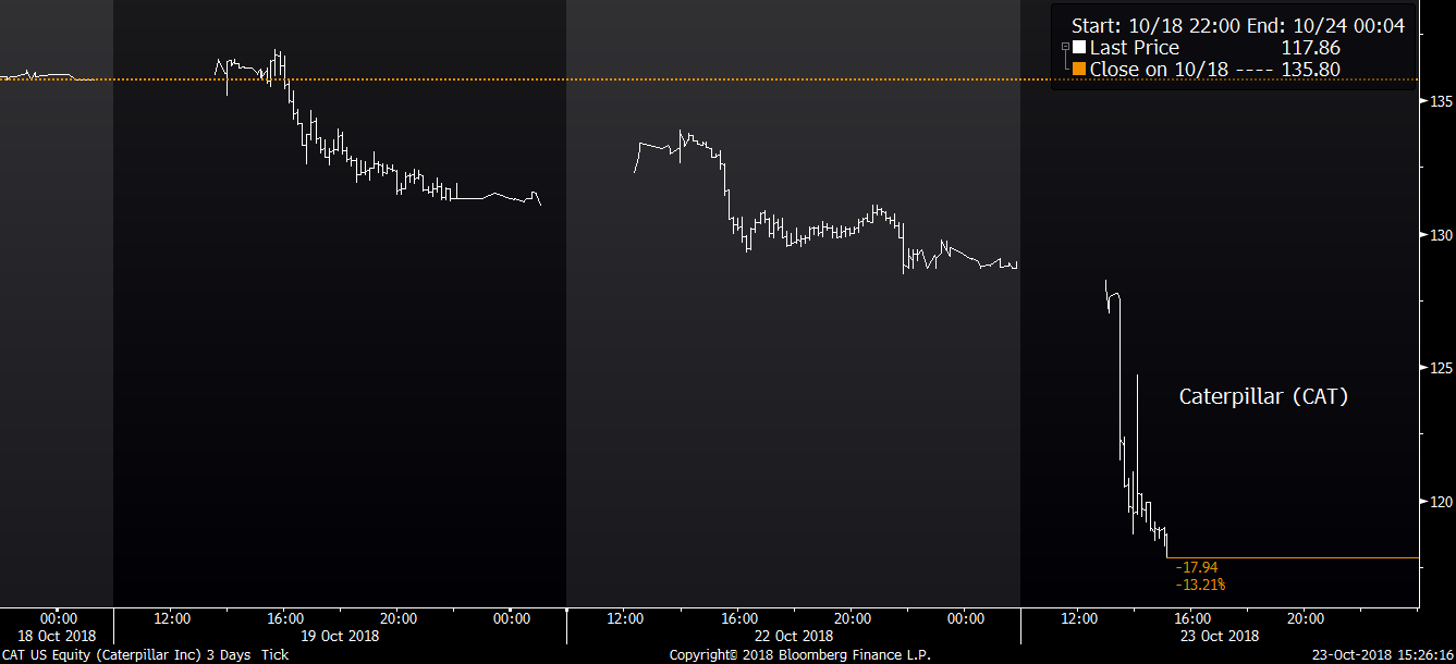Druhý pohled už ale tak optimistický není, což je patrné například u společnosti Caterpillar (CAT), která je díky prodeji stavební techniky často spolehlivým indikátorem kondice americké ekonomiky. Tržby i zisk Caterpillar sice překonaly konsenzus, akcie společnosti v pre-marketu ale i tak klesly o 8 % na 118 USD, když management překvapivě nezvýšil guidance na 4Q a také varoval před růstem nákladů, díky němuž bude muset zdražovat. Za růstem nákladů přitom nestojí jen napjatá situace na trhu práce, ale hlavně 30% nárůst cen oceli, který je přímým důsledkem americké obchodní války s Čínou.