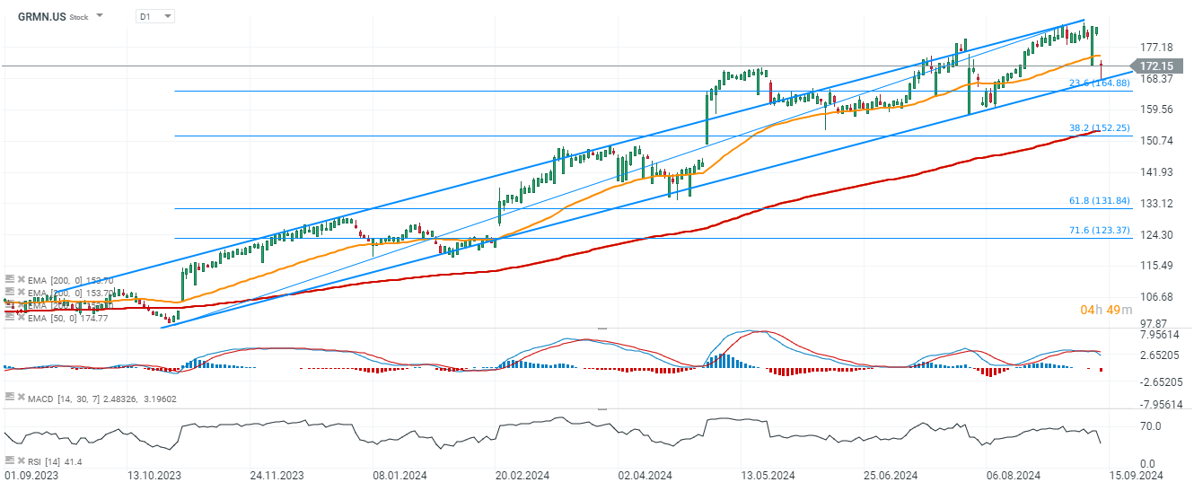 Akcie společnosti Garmin (GRMN.US) dnes klesají o téměř 6 %, protože Barclays dnes snížila hodnocení na „prodat“. Investiční banka snížila svou 12měsíční cílovou cenu pro akcie na 133 USD a nyní očekává slabé tržby ve 2. pololetí 2024 a klesající marže. Tržby společnosti ve 2Q 2024 meziročně vyskočily o 14 %, ale zisk vzrostl o 4 %. Barclays to komentovala slovy, že „základní prostředí spotřebitelských výdajů na hardware zůstává utlumené“. Barclays předpokládá, že Garmin bude ve druhé polovině letošního roku prodávat relativně malé množství vysoce maržových produktů pro letectví a nižší než v první polovině roku, přičemž bude prodávat více nízkomaržových produktů pro automobilový průmysl, což povede ke slabším hrubým ziskovým maržím.