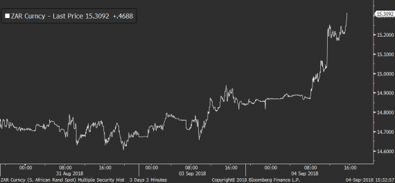 Klíčovým faktorem za dnešním růstem nervozity se zdá být opět dění na měnách emerging markets ekonomik. Výrazně ztrácí hlavně argentinské peso, jehož cena se dnes propadá o více než 4 %. Pod tlakem je ale i turecká lira nebo jihoafrický rand, který doplácí na dnešní makro, podle něhož se jihoafrická ekonomika začíná propadat do recese. Tamní HDP se propadlo o 0,7 % a ještě více tak podrylo již tak klesající důvěru v sílu jihoafrické měny.