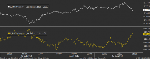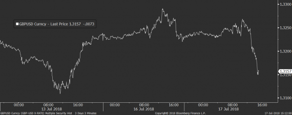 K trhu práce se dnes vyjádřil ve svém projevu také šéf Bank of England Mark Carney, podle kterého je to právě tlak na vyšší mzdy, který banku nutí k utahování měnové politiky. Ta by přitom mohla zvýšit sazby už na svém srpnovém zasedání, jelikož šance na jejich zvýšení dosahuje podle futures trhu už více než 90 %. Solidní data z trhu práce dopoledne libře sice dokázala mírně pomoci, odpoledne se ale britská měna opět dostala pod prodejní tlak a bez zjevného fundamentu začala na páru s dolarem opět slábnout.