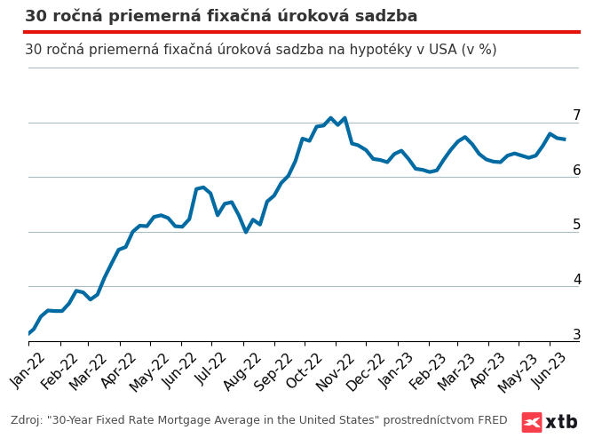 Aj napriek zvyšujúcim sa úrokovým sadzbám v USA sa trh s nehnuteľnosťami stále drží veľmi silný. Úrokové sadzby pre hypotéky sa zastabilizovali na úrovni 6,69 %, čo je stále jedna z najvyšších úrokových sadzieb od roku 2007. V teórii by to mohlo predstavovať hrozbu pre trh s nehnuteľnosťami a vyvolať tlak na pokles cien.