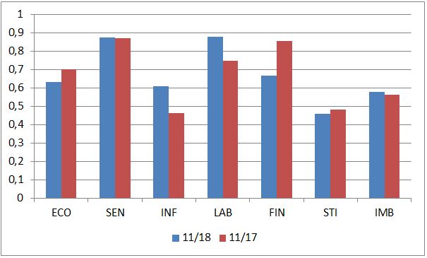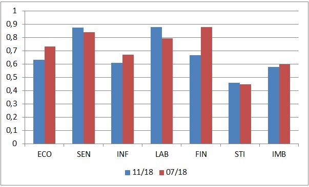Čo sa výrazne zhoršilo, to sú finančné podmienky – investori sú menej ochotní poskytovať kapitál, pre rizikové spoločnosti s vyššími prirážkami. K miernemu zhoršeniu došlo v ekonomických dátach a pri inflačných tlakoch. Stimuly a nerovnováhy sú stále plus/mínus rovnaké. Naopak, trh práce je ešte viac utiahnutý a indikátory nálady v ekonomike sú taktiež o niečo lepšie. Čiže k zásadnejšiemu zhoršeniu situácie nedošlo.
