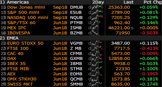Také po včerejší klidné seanci dnes na trzích panuje poměrně dobrá nálada. Úroveň rizikových přirážek klesá a rizikovým aktivům se ve většině případů mírně daří, k čemuž pomohla i úspěšná schůzka prezidentů USA a Severní Koreje, která je podle Donalda Trumpa prvním krokem k úspěšné denuklearizaci Severní Koreje a zklidnění napětí v regionu. Dobrou zprávou pro trhy je i postupné zklidňování napětí v Itálii, kde už včera ministr financí naznačil, že země nemá zájem vystupovat z eurozóny, což má pozitivní dopad jak na italská aktiva tak na euro. Indexy v Evropě si tak ve většině případů své pozice udržují a včerejší zisky bez větších problémů brání také futures na indexy v USA,
