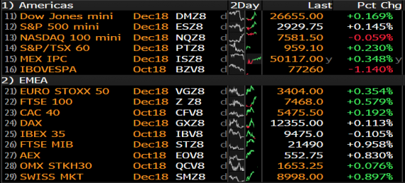 Úterní seance je zatím na finančních trzích bez velkých překvapení a nese se ve spíše vyčkávacím duchu. Po včerejší mírné korekci dnes Evropské indexy nepatrně rostou a lehce v zelených číslech se drží také futures na indexy v USA. Zisky jsou ale malé a nijak vysoké nejsou ani celkové objemy.