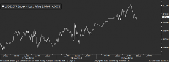 Riziková aktiva si tak své pozice drží a trhy čekají na to, co přinese zítřejší zasedání Fedu, na kterém by měla americká centrální banka nejen zvýšit sazby, ale také naznačit náklonnost k jejich dalšímu zvyšování ještě koncem letošního roku. S tím podle všeho počítají hlavně obchodníci na trhu s dluhopisy, jejichž výnosy se v případě amerických desetiletých splatností vyhouply na 3,1 %.