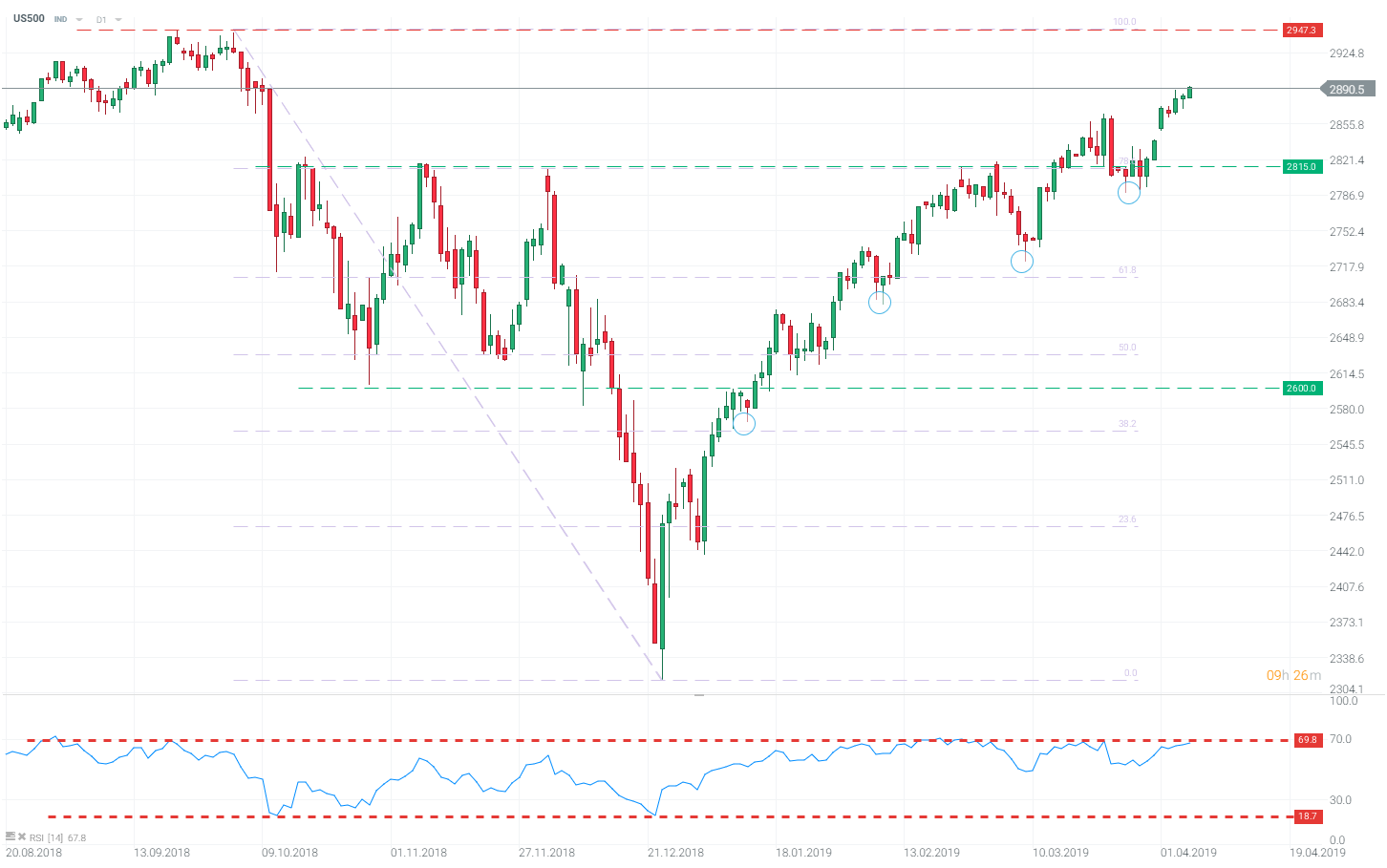 US500 reagoval pozitívne na NFP dáta a je menej než 60 bodov od najvyšších úrovni. Zdroj. xStation5