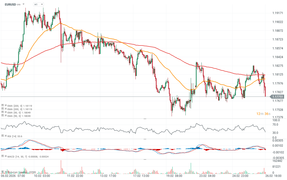 Měnový pár eurodolar dnes obnovil silný klesající impuls a propadl se na 1,1775 z včerejší úrovně 1,1827.
