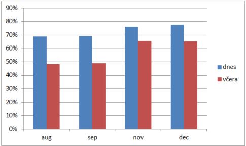 Pravdepodobnosť zvýšenia úrokových sadzieb na zvyšných tohtoročných zasadnutiach včera a dnes