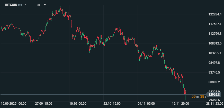 Bitcoin zažívá nejprudší měsíční pokles od velkého krypto kolapsu v roce 2022. Jen během listopadu ztratil téměř 30 % své hodnoty a propadl se na sedmiměsíční minima pod hranicí 85 000 USD. Ještě před několika týdny se přitom obchodoval nad 120 000 USD. Výprodej odráží nejen oslabující důvěru v kryptoměny, ale i celkové vyhýbání se rizikovým aktivům v globálním měřítku.