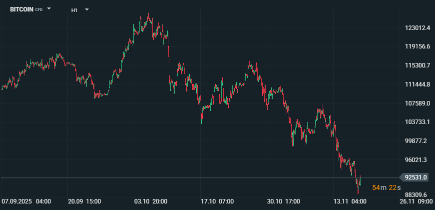 Bitcoin se poprvé za sedm měsíců propadl pod hranici 90 000 USD, čímž ztratil veškerý letošní zisk a vyjadřuje širší ochabování ochoty investorů riskovat. Pokles o téměř 30 % od říjnového maxima nad 126 000 USD ukazuje, že kryptoměny nejsou izolované od makroekonomických i sentimentových změn.