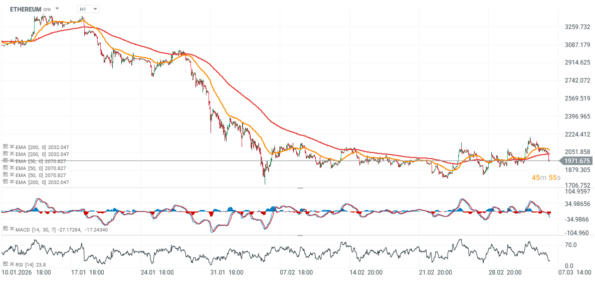 Ethereum vymazalo několik dní růstu a propadlo se zpět pod 2 000 USD, čímž v podstatě potvrzuje převládající downtrend na trhu.