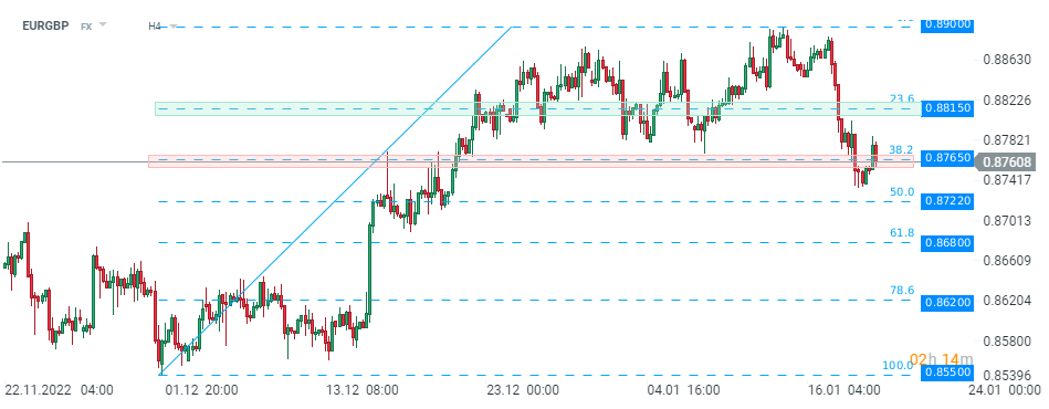 EURGBP na dnešní zápis z jednání ECB téměř nereagoval. Pár prorazil pod místní podporu na úrovni 0,8765. Zdroj: xStation5