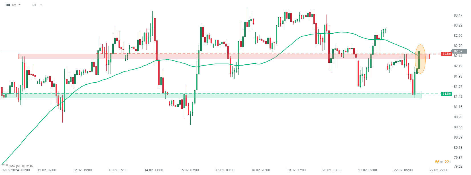 Ceny ropy po zveřejnění zprávy vzrostly o přibližně 0,3 %, přičemž Brent (OIL) se dostal nad 50hodinový klouzavý průměr.
