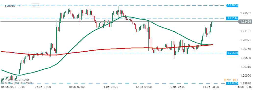 EURUSD vzrostl po dnešních datech na úroveň rezistence na 1,2151. Zdroj:xStation5