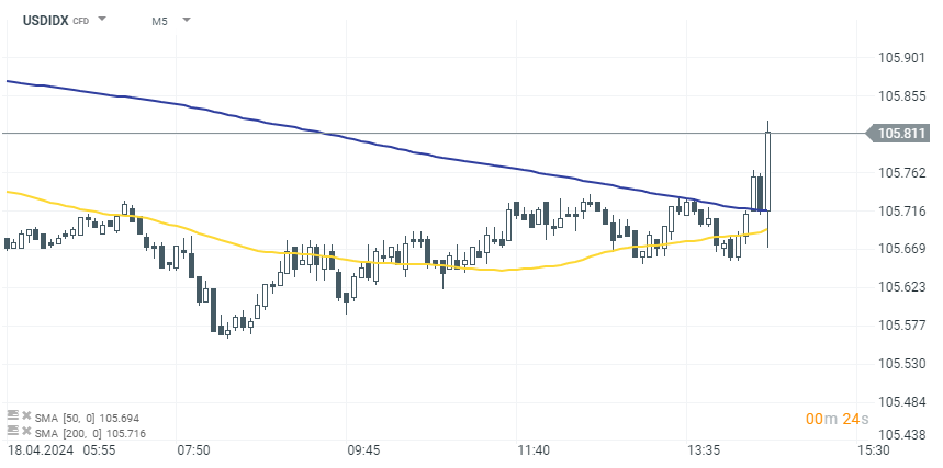 Dolar po zveřejnění posiluje. Trh práce zůstává silný, což potvrzují nízké hodnoty Jobless Claims za poslední týden. Navíc první regionální index, Philly Fed, naznačuje výrazné zlepšení v průmyslu v dubnu.