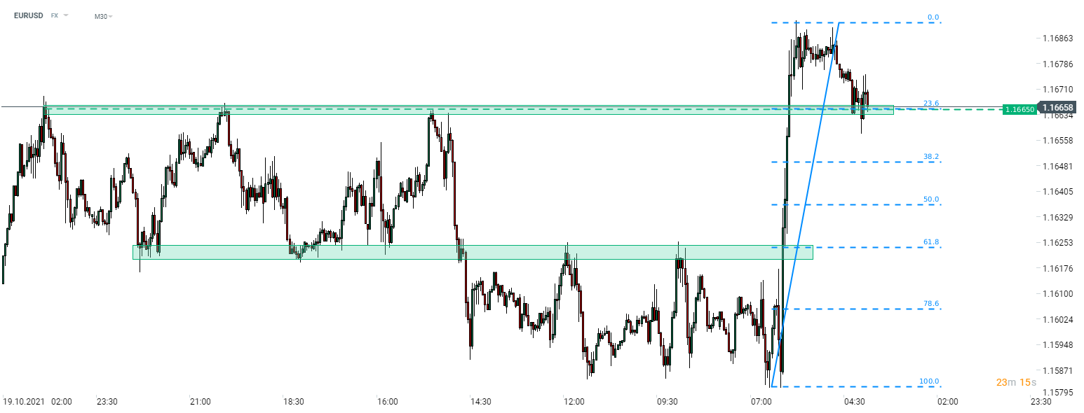 EURUSD sa po zverejnení dát z Nemecka a Talianska mierne stiahol nadol, ale dokázal sa udržať nad zónou podpory na úrovni 1,1665. Zdroj: xStation5