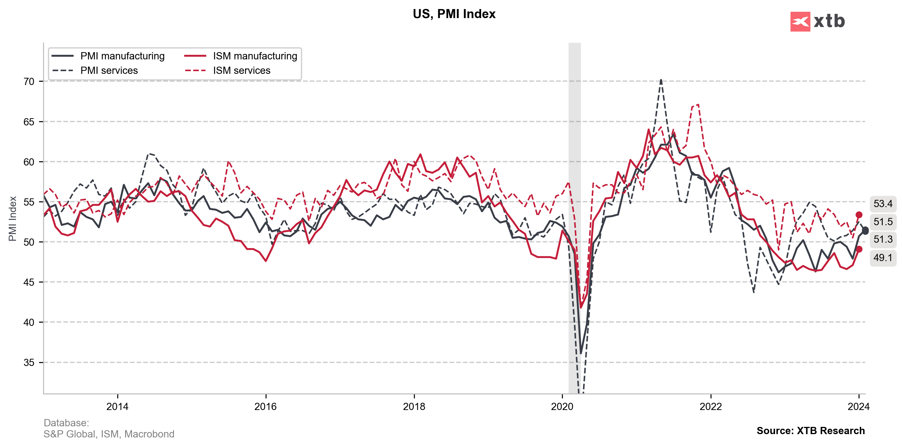 - Služby: očekávané 51,3 vs 52,0 (dříve 52,5)