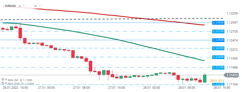 EURUSD vzrostl po zveřejnění dnešních dat a směřoval k rezistenci na 1,1170. Zdroj:xStation5