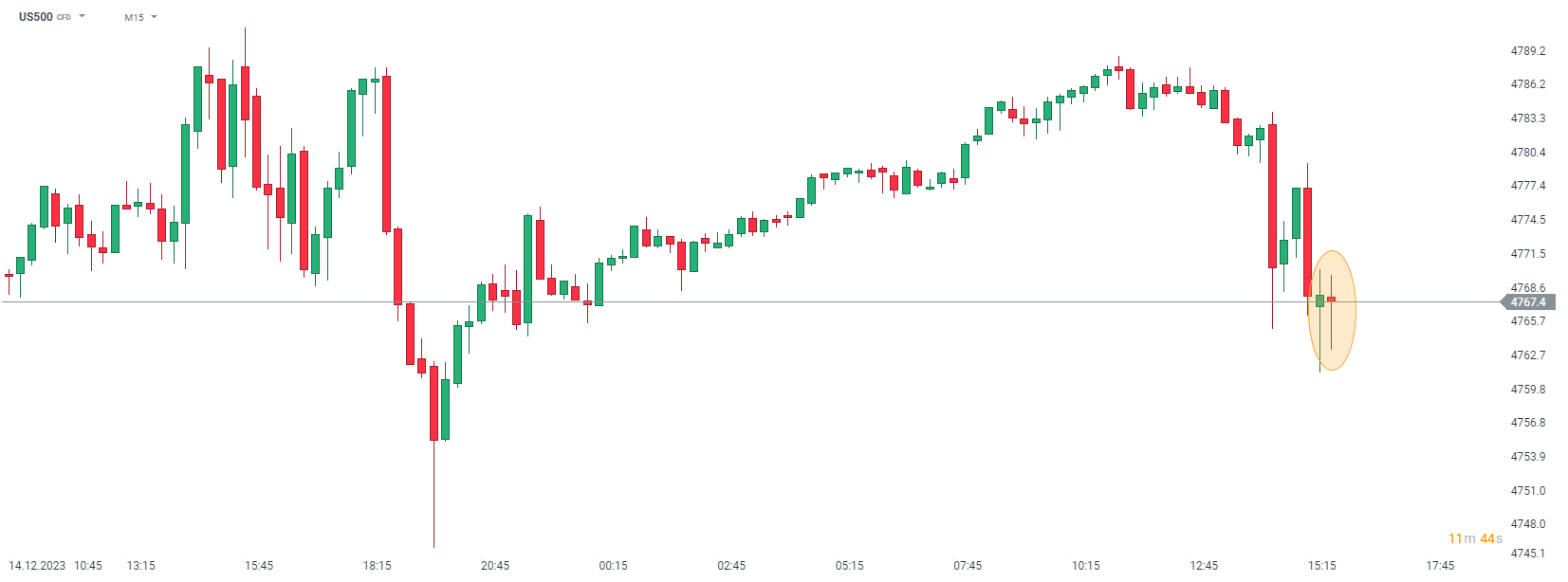 US500 se po prosincových datech PMI v USA mírně snížil. Zdroj: xStation5
