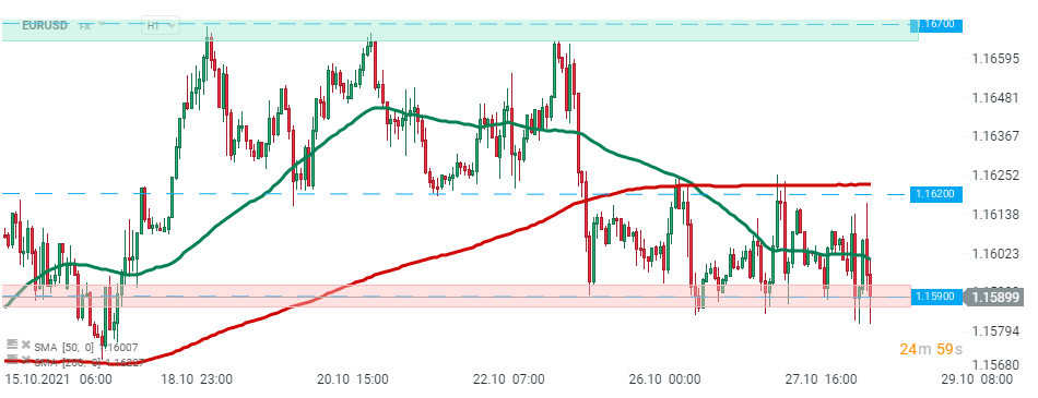Pár EURUSD po dnešnom zverejnení údajov klesol a testuje úroveň podpory na hodnote 1,1590. Zdroj:xStation5
