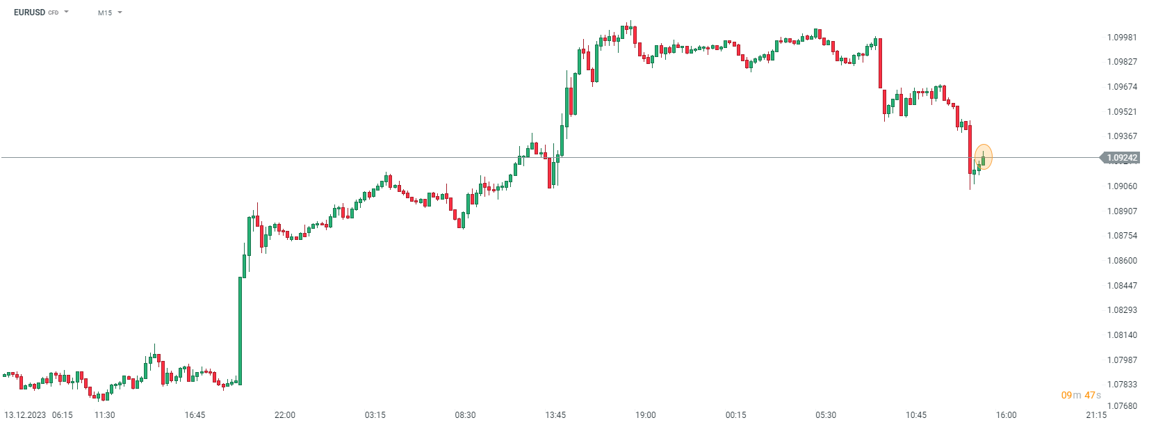 EURUSD se zvýšil po zveřejnění slabších než očekávaných údajů o průmyslové výrobě v USA. Zdroj: xStation5