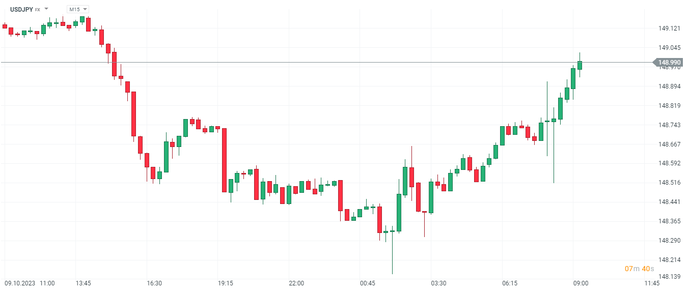 JPY po této zprávě opět oslabil, přičemž USDJPY se přiblížil k úrovni 149 poblíž zóny hlavní rezistence 150.