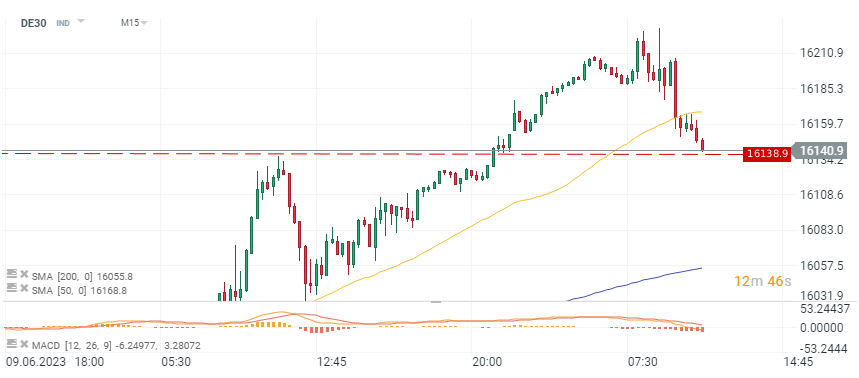 DE30 Index, M15 interval, Zdroj: xStation 5