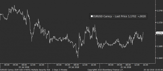 Dopad na euro byl ale nulový a evropská měna na páru s dolarem dál drží cenu v okolí 1,17 EURUSD a vyčkává tak na klíčový fundament tohoto týdne, kterým pro ni bude zítřejší zasedání ECB.