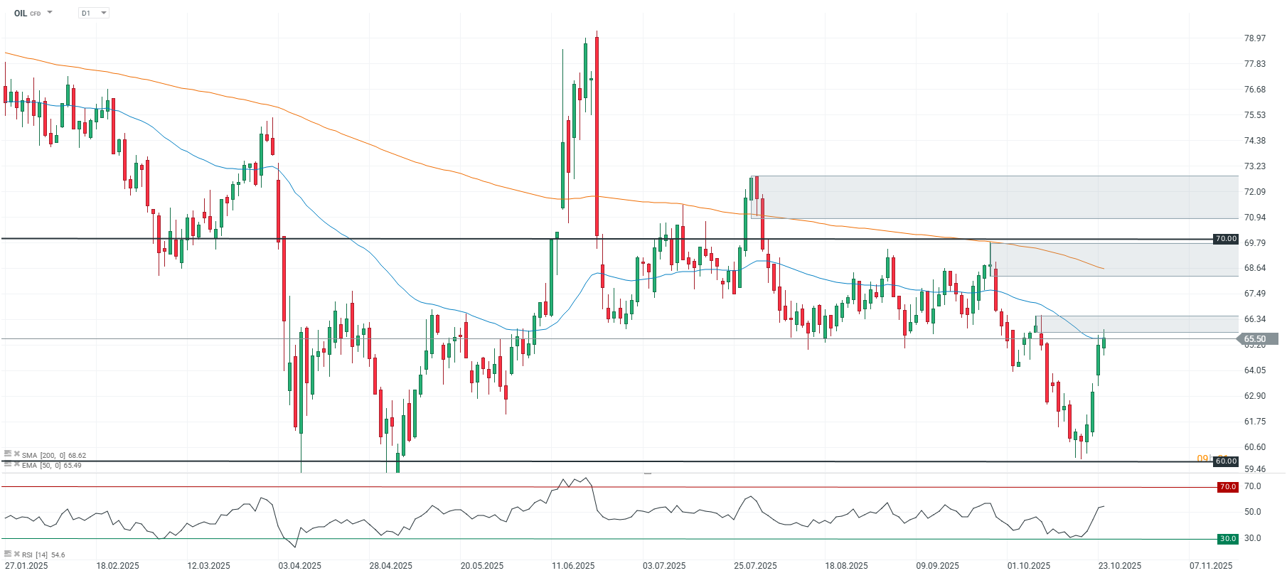 Po ostré reakci na novou vlnu západních sankcí proti ruskému ropnému sektoru se trh s ropou uklidňuje. Cena Brentu, která ve čtvrtek skokově vzrostla o více než pět procent, se nyní na konci týdne obchoduje v blízkosti 66 dolarů za barel. Investoři si uvědomují, že ačkoli sankce zasáhly dvě klíčové ruské společnosti – Rosněfť a Lukoil, dopad na fyzické dodávky zatím není dramatický.