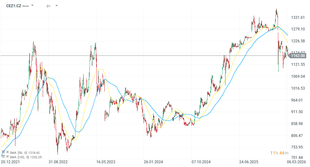Akcie ČEZ patří dlouhodobě mezi nejvýznamnější tituly pražské burzy a tvoří významnou část indexu PX. Akcie ČEZu se obchodovaly během ledna na rekordních úrovních nad hranicí 1 350 Kč, během posledních měsíců došlo k poklesu až k hodnotě 1 100 Kč. Aktuálně se akcie obchodují nad hranicí 1 150 Kč. Z dlouhodobějšího hlediska se ale stále jedná o vyšší hodnoty.