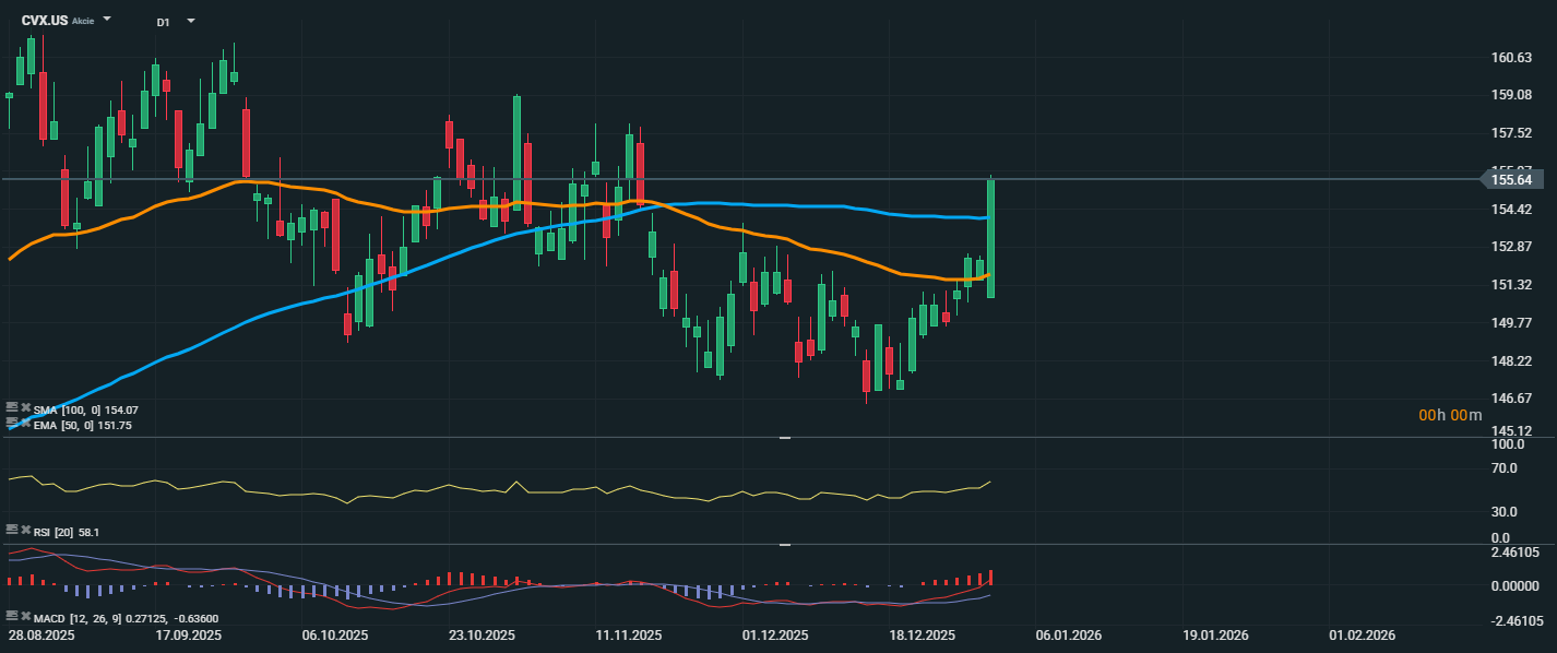 Akcie amerických ropných společností dnes výrazně posílily poté, co prezident Donald Trump prohlásil, že Spojené státy plánují „řídit“ Venezuelu poté, co byl během víkendu zadržen tamní prezident Nicolás Maduro. Zpráva okamžitě rozpoutala optimismus na trhu s ropou, zejména v souvislosti s budoucností venezuelských ropných rezerv, které jsou největší na světě.