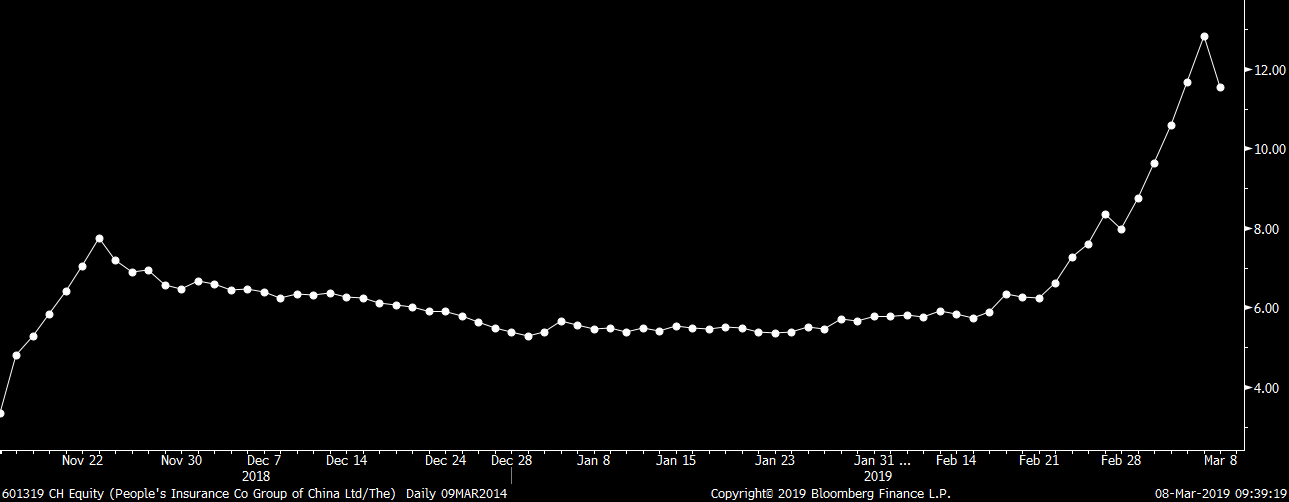 Akcie People’s insurance company dnes klesly o 10 %. Zdroj: Bloomberg
