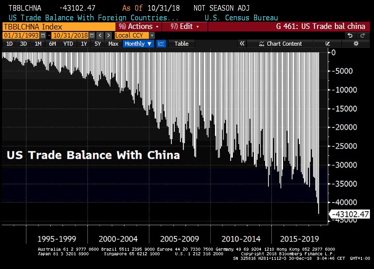 Vývoj salda obchodnej bilancie medzi USA a Čínou (@Schuldensuehner)