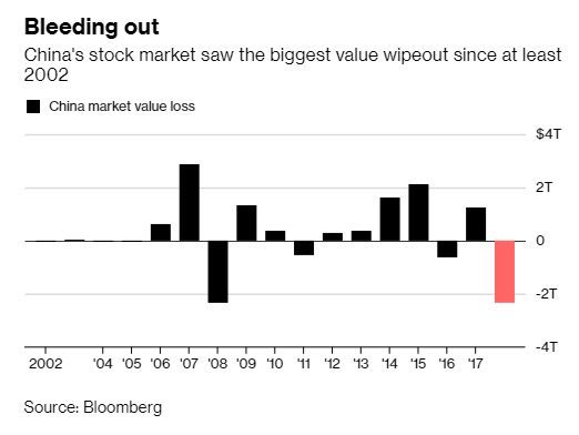Hodnota čínskych akcií klesla tento rok o viac ako 2 bil. CNY. To je takmer totožné so stratou počas finančnej krízy (percentuálne však bola menšia). V porovnaní s rokmi 2015-2016, ktoré označujeme za „spľasnutie bubliny na čínskych akciách, je to niekoľkonásobne viac (je však potrebné dodať, že bublina sa nafúkla a vo veľkej miere aj spľasla v roku 2015, čiže sa to v medziročnej štatistike neobjavilo).