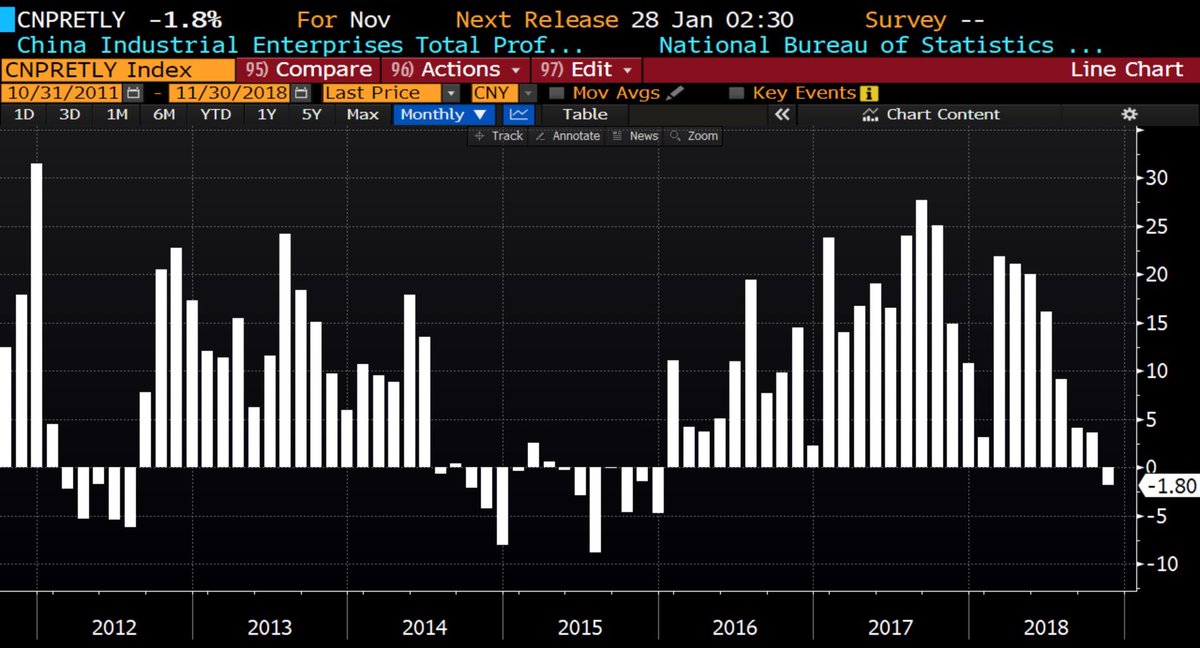 Medziročná zmena ziskov v čínskom priemysle (graf od @jsblokland):