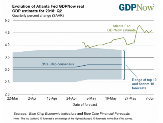 - Ekonomické dáta sa zlepšili. Predovšetkým spotreba domácností, ktorá bola v prvom kvartáli utlmená. Real-time model anualizovaného rastu HDP pre druhý kvartál dokonca ukazuje rast na úrovni 4,5%, čo by bol jeden z najvyšších rastov v tejto dekáde. Navyše, miera nezamestnanosti klesla nad 3,8% a je teda ešte hlbšie pod odhadom prirodzenej miery nezamestnanosti.