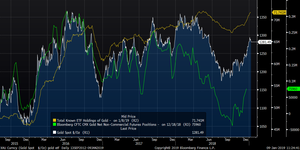CFTC data ukazují postupné nárůst net-long pozic velkých obchodníků. Kvůli neschválenému financování vlády nebudou v tomto týdnu nová data k dispozici.
