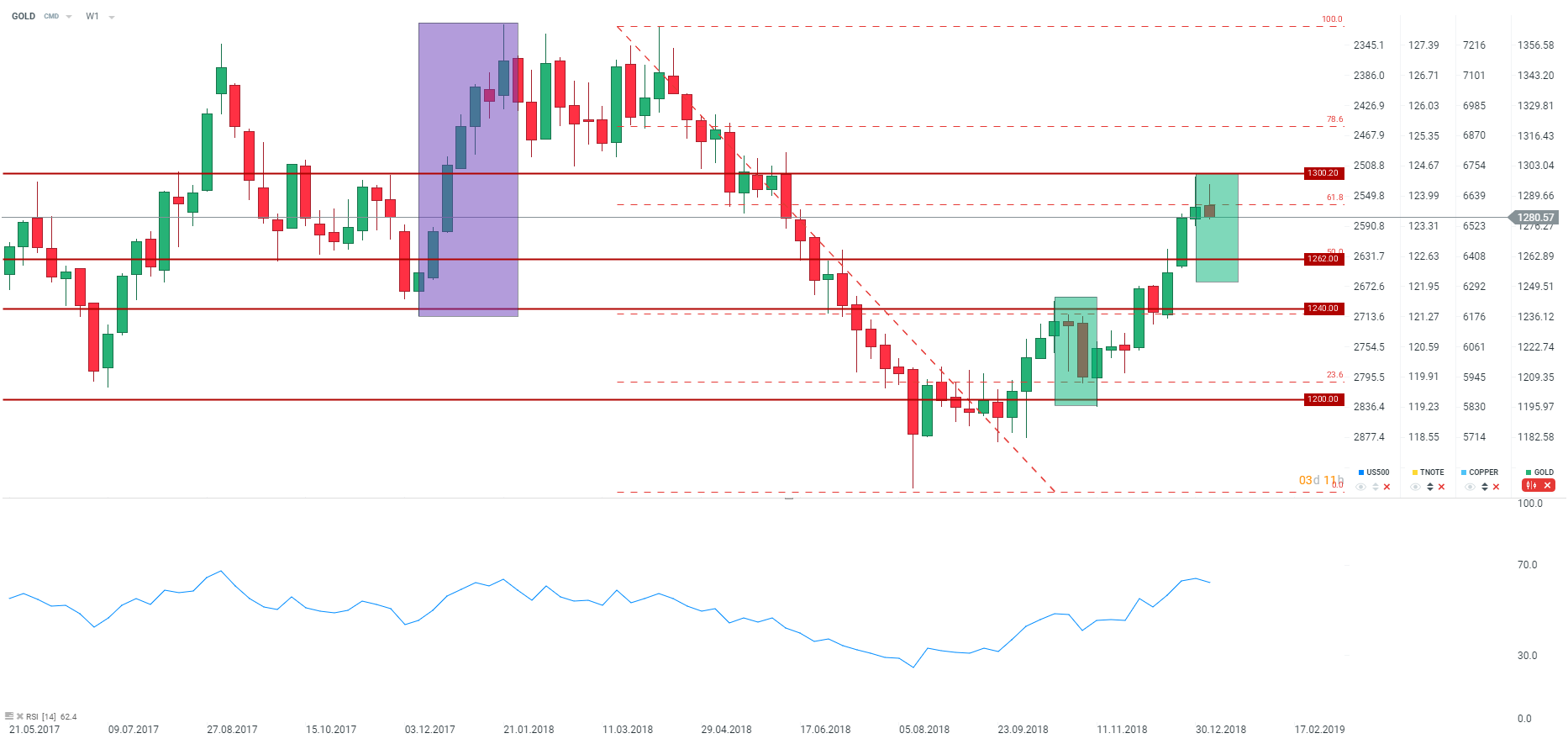 Ceny zlata by mohly klesnout k 1260 USD/oz. Zdroj: xStation5