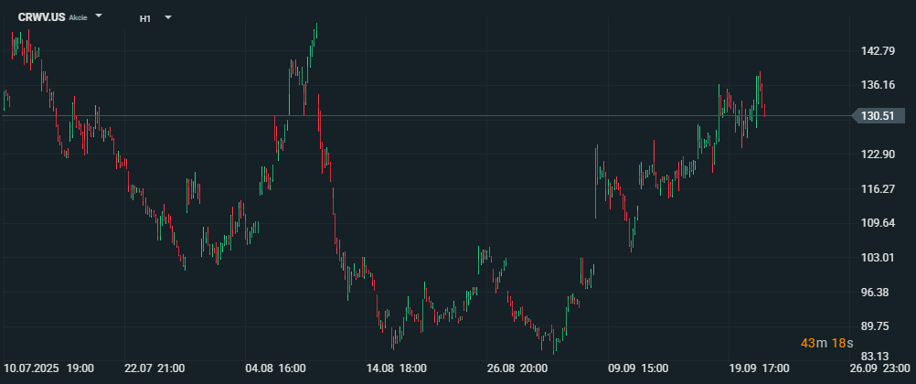 Po oznámení dohody akcie společnosti CoreWeave vzrostly o 2,2 %, což odráží důvěru investorů v rostoucí význam firmy v oblasti AI infrastruktury. Zdroj: xStation5